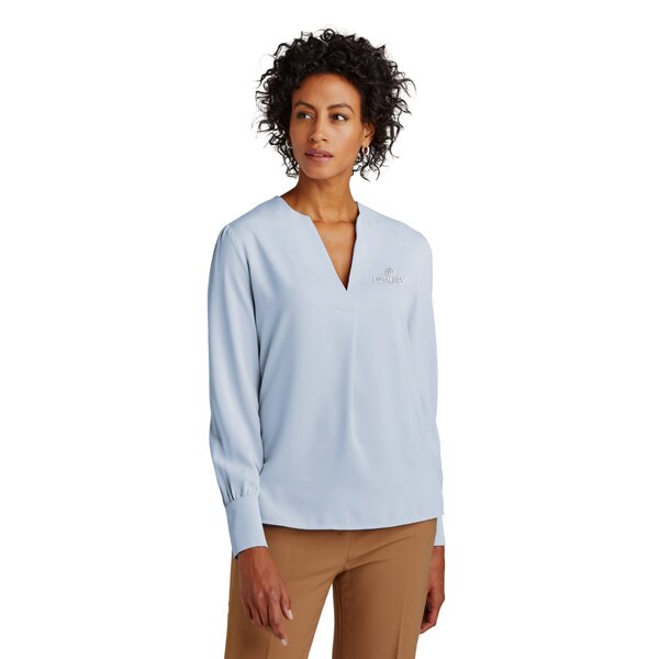 The soft satin fabric of this versatile blouse has a subtle sheen, lending an elegant look to any outfit. Designed for an easy fit to keep you feeling confident and comfortable. 4.1-ounce, 100% polyester satin. Anti-static finish. Open v-neck popover. Wide box pleat at back yoke