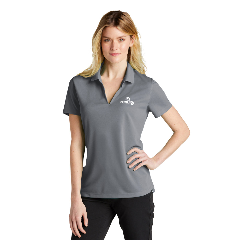 The best-selling Nike polo just got better. Still engineered from soft, stretchable micro pique fabric, the Nike Dri-FIT Micro Pique 2.0 Polo is now 5 styles strong. It delivers unparalleled comfort with Dri-FIT moisture management technology and features updated design lines and fit. Tailored for a feminine fit with a self-fabric collar, open neckline and side vents. Rolled-forward shoulder seams, open hem sleeves and open hem. White or black pearlized buttons selected to complement the shirt color. Contrast Swoosh logo is embroidered on the left sleeve. Made of 4.3-ounce, 100% polyester Dri-FIT fabric.