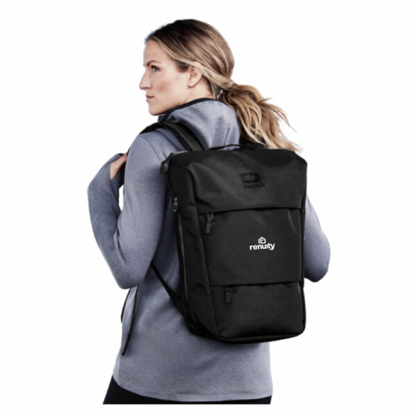 This rucksack keeps your laptop and other tech gear well-protected, while the two-tone crosshatch pattern adds modern street cred. TPE-Backed two-tone 600D poly. Easy-access top loading padded laptop compartment. Padded tablet/e-reader sleeve. Front flap zippered pocket for easy decoration. Double buckle front flap closure. Interior mesh organizer pockets. Front accessory pocket with mesh pockets. Side beverage pocket. Side accessory pocket. Laptop sleeve: 15.5″h x 10.5″w x 1″d; fits most 17″ laptops. Dimensions: 19″h x 12.25″w x 6.5″d. Capacity: 1,300 cu.in./21L