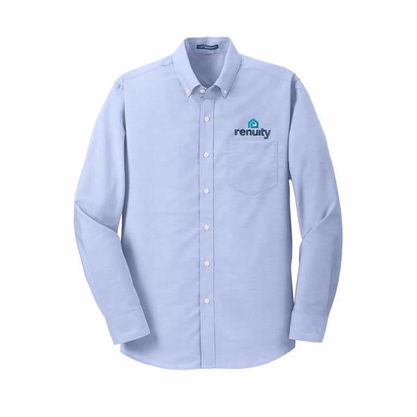 Look your best in a tried-and-true oxford that performs. Designed to release stains, our wrinkle-resistant SuperPro Oxford has a soft hand to keep you looking neat and professional all day long.